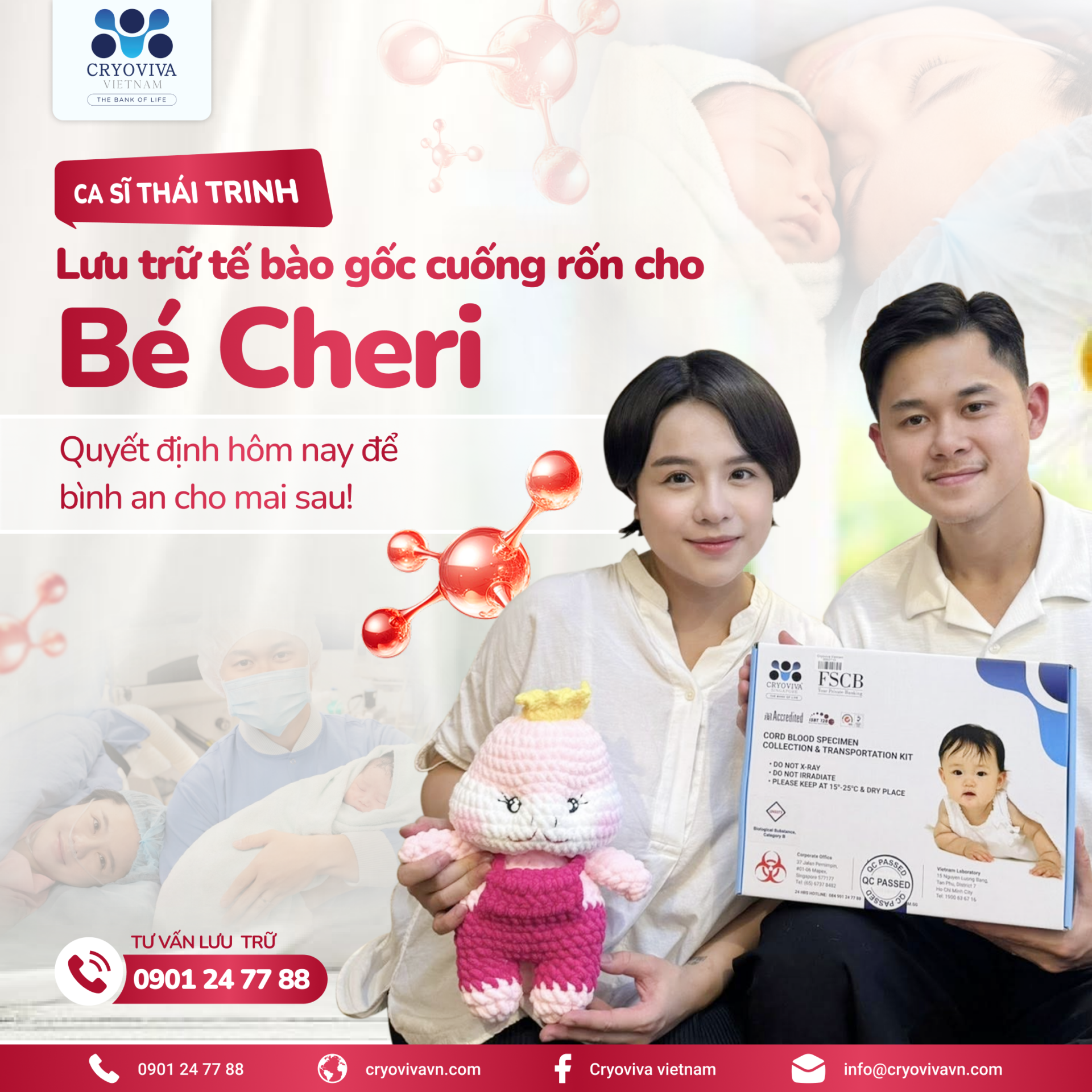 Gọi vào hotline 0901 24 77 88 hoặc truy cập Fanpage Cryoviva Vietnam để được tư vấn miễn phí