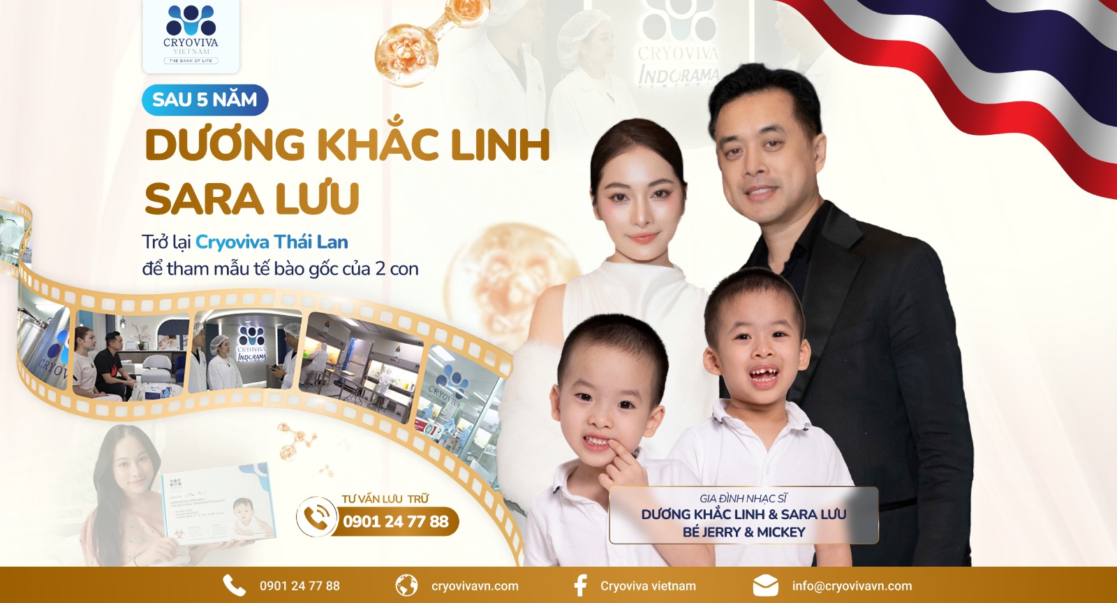 Sau 5 năm lưu trữ tế bào gốc cuống rốn cho 2 bé Mickey và Jerry, vợ chồng nhạc sĩ Dương Khắc Linh và ca sĩ Sara Lưu đã có chuyến thăm trực tiếp phòng Lab tại Cryoviva Thái Lan. Đây không chỉ là dịp kiểm tra “tài sản sức khỏe” mà còn là cơ hội để cặp đôi tìm hiểu về những bước tiến đột phá của y học tái tạo.