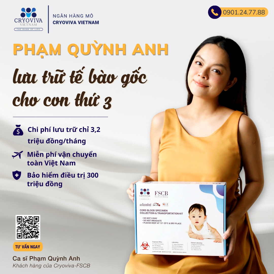 Sau những ngày chờ đợi, mới đây, nữ ca sĩ Phạm Quỳnh Anh hạnh phúc thông báo đã hạ sinh em bé thứ 3, đồng thời chia sẻ thông tin lưu trữ tế bào gốc cho bé. Phạm Quỳnh Anh lưu trữ tế bào gốc cho con, hành trình làm mẹ càng thêm ý nghĩa…