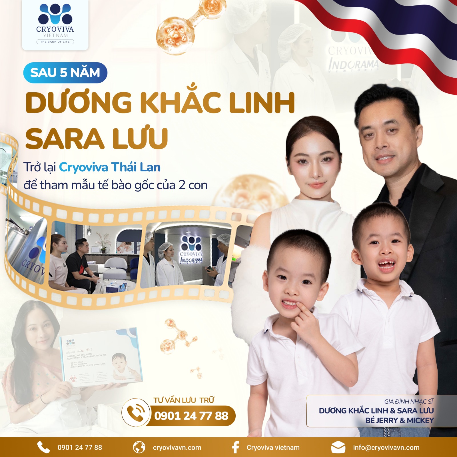 Sau 5 năm lưu trữ tế bào gốc cuống rốn cho 2 bé Mickey và Jerry, vợ chồng nhạc sĩ Dương Khắc Linh và ca sĩ Sara Lưu đã có chuyến thăm trực tiếp phòng Lab tại Cryoviva Thái Lan. Đây không chỉ là dịp kiểm tra “tài sản sức khỏe” mà còn là cơ hội để cặp đôi tìm hiểu về những bước tiến đột phá của y học tái tạo.